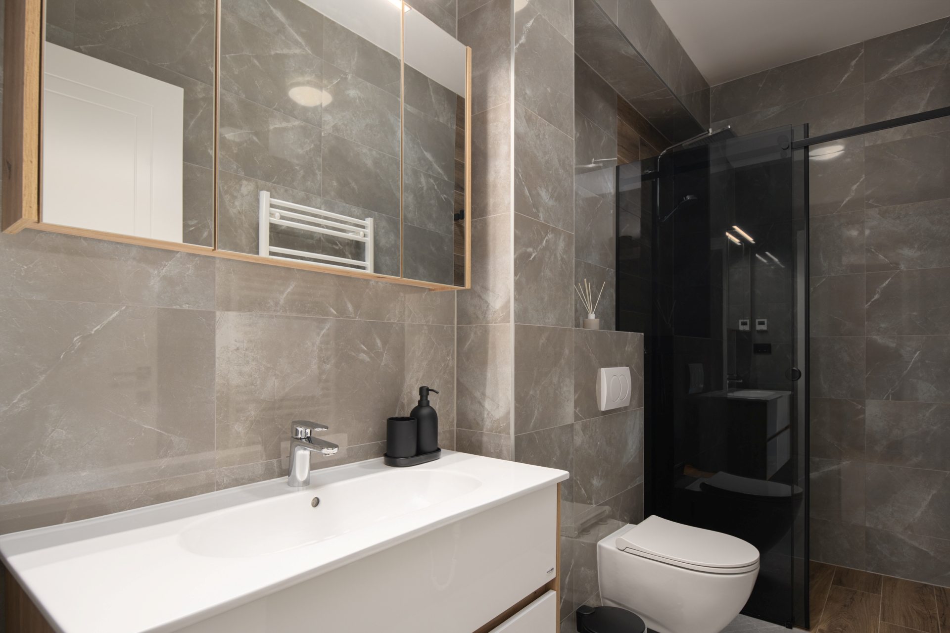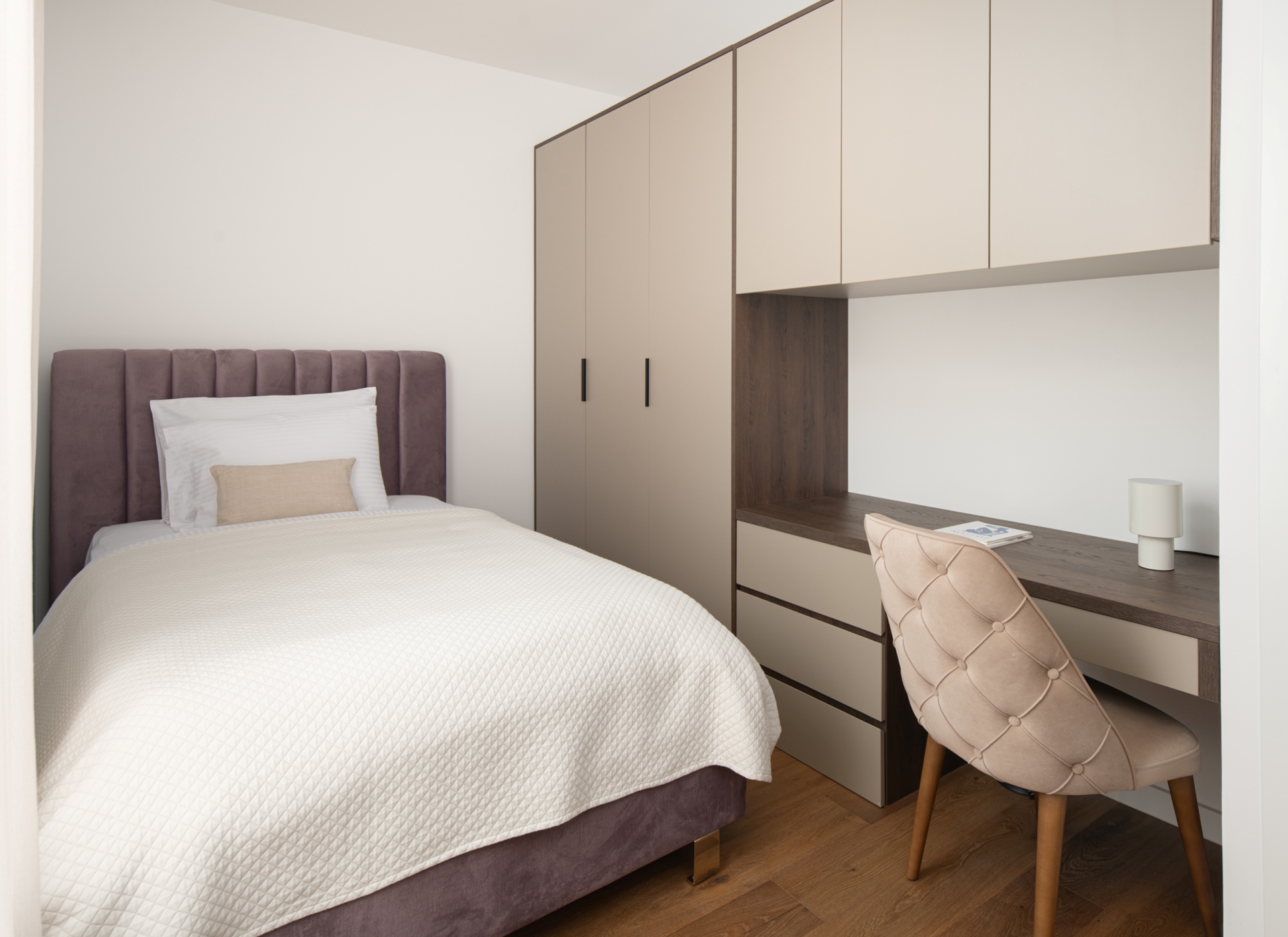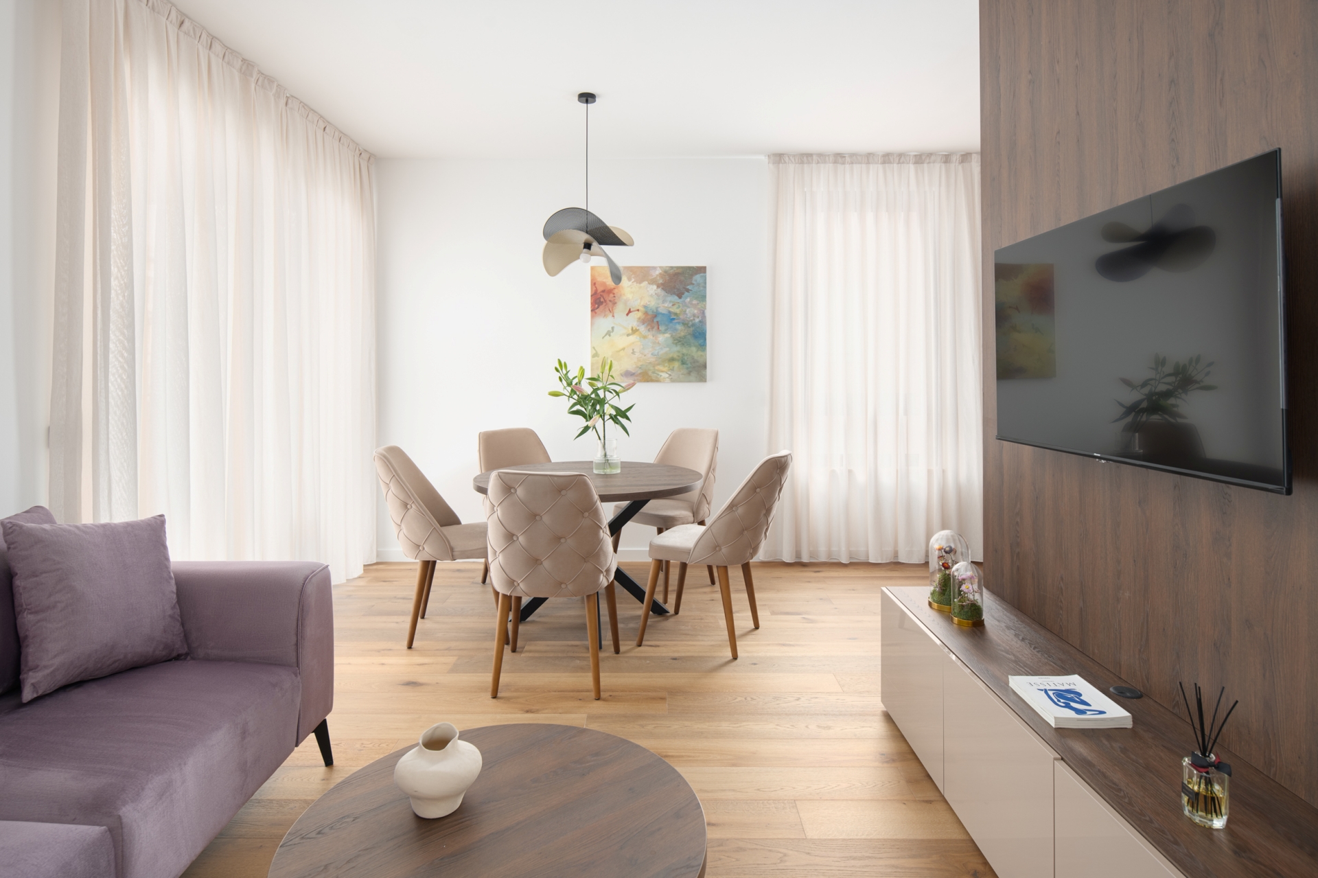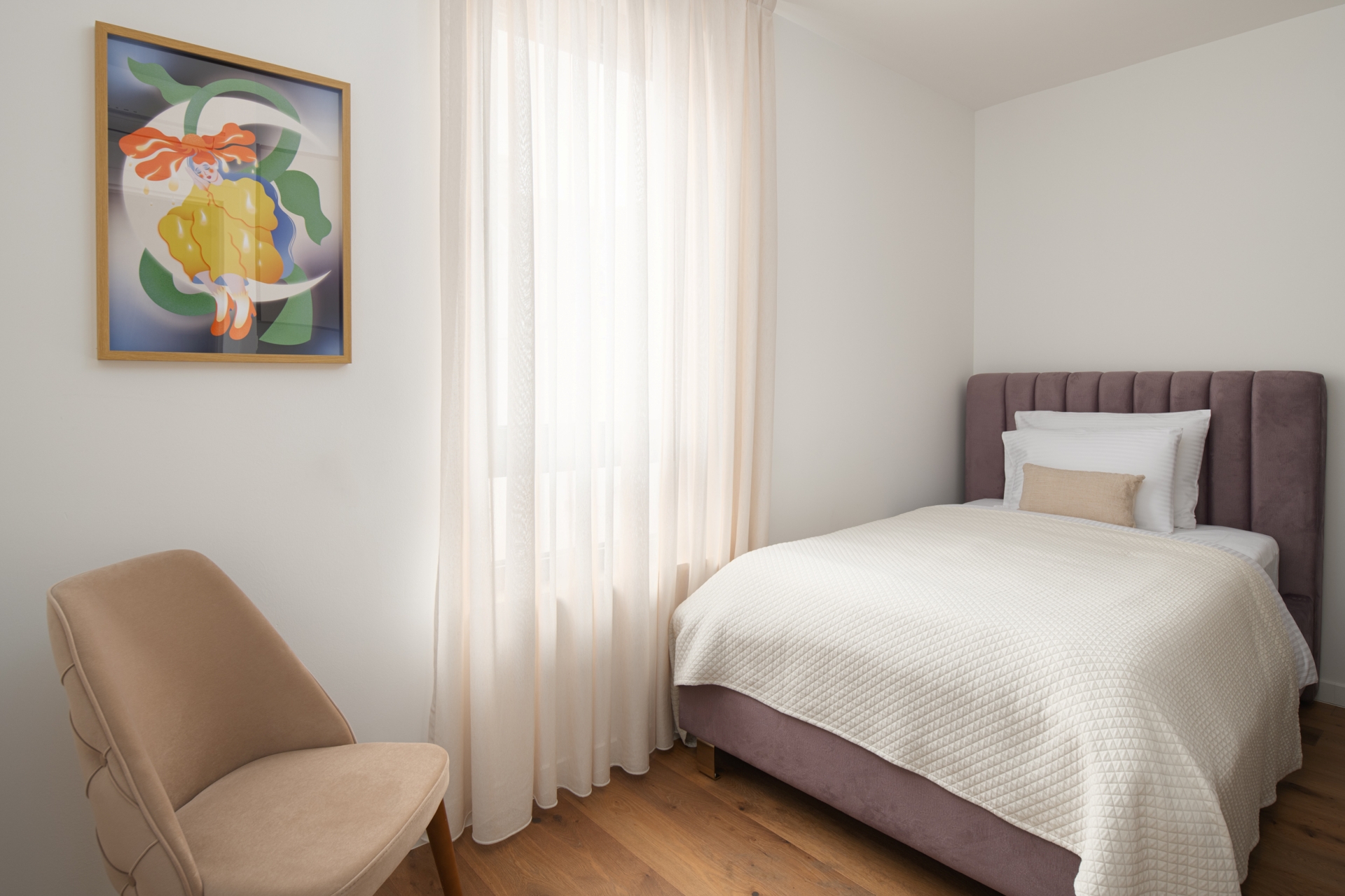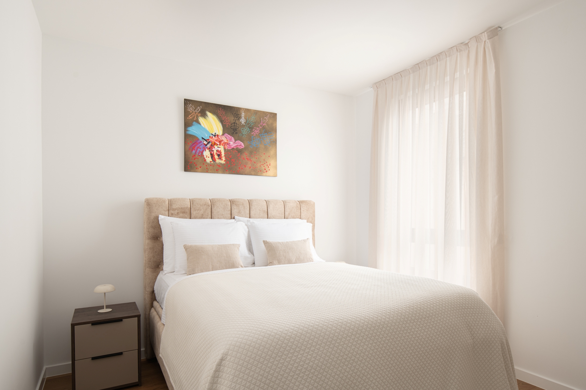 Elegantni apartman s dvije spavaće sobe i balkonom na 1. katu Echo Art Residencea pruža iskustvo boravka koje nadilazi očekivanja. Kombinacija toplih nijansi, prirodnog svjetla i suvremenog dizajna čini prostor istinski ugodnim, dok originalna djela hrvatskih umjetnika unose karakter, emociju i osobnost u svaki kutak.