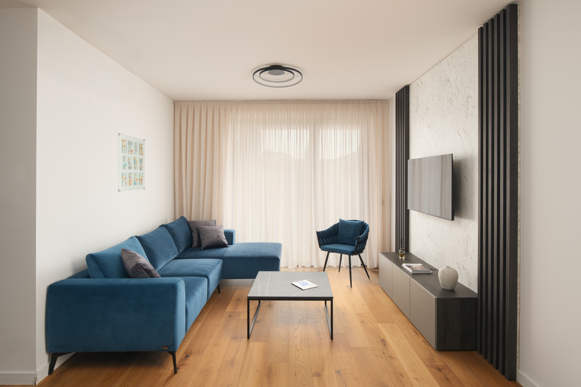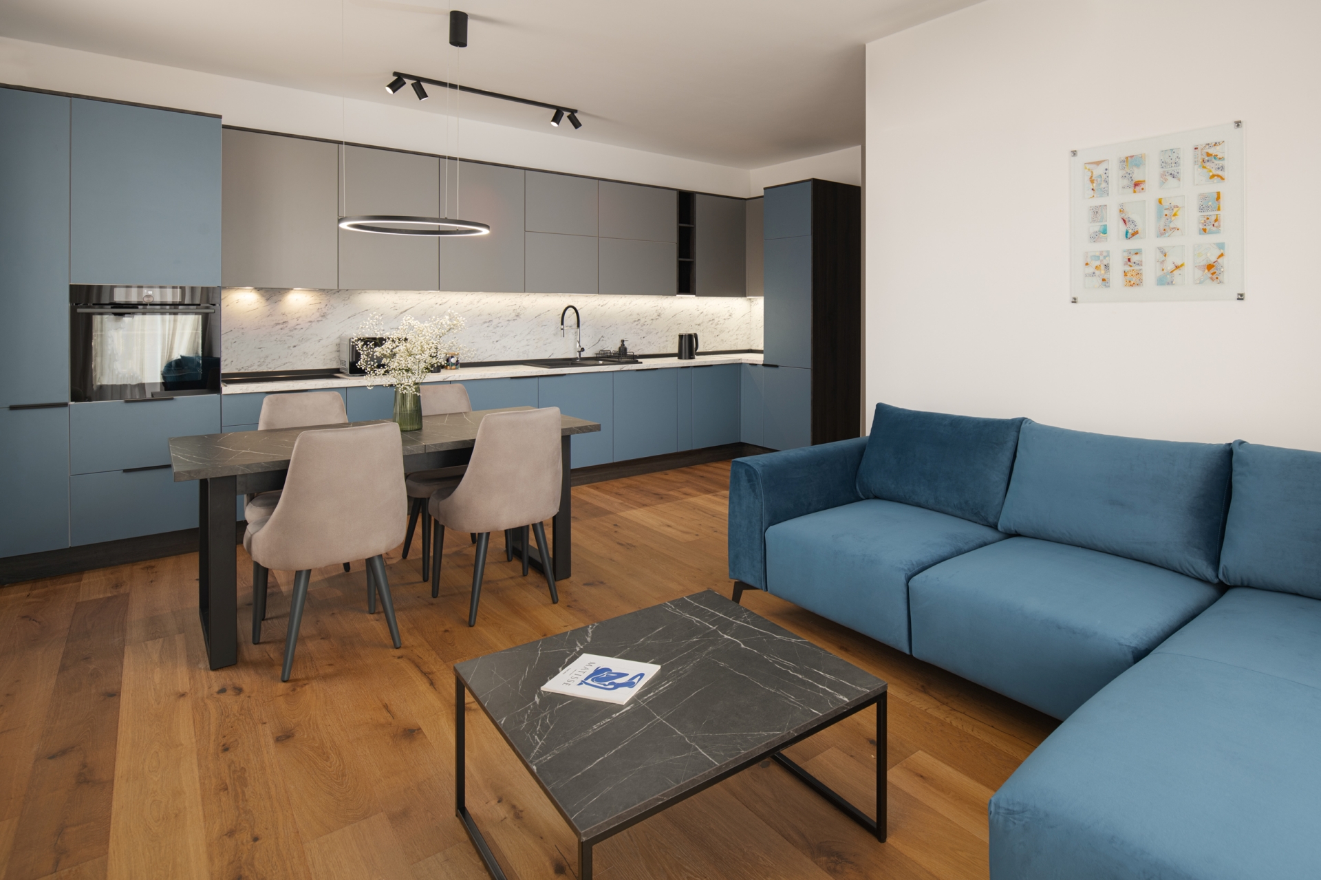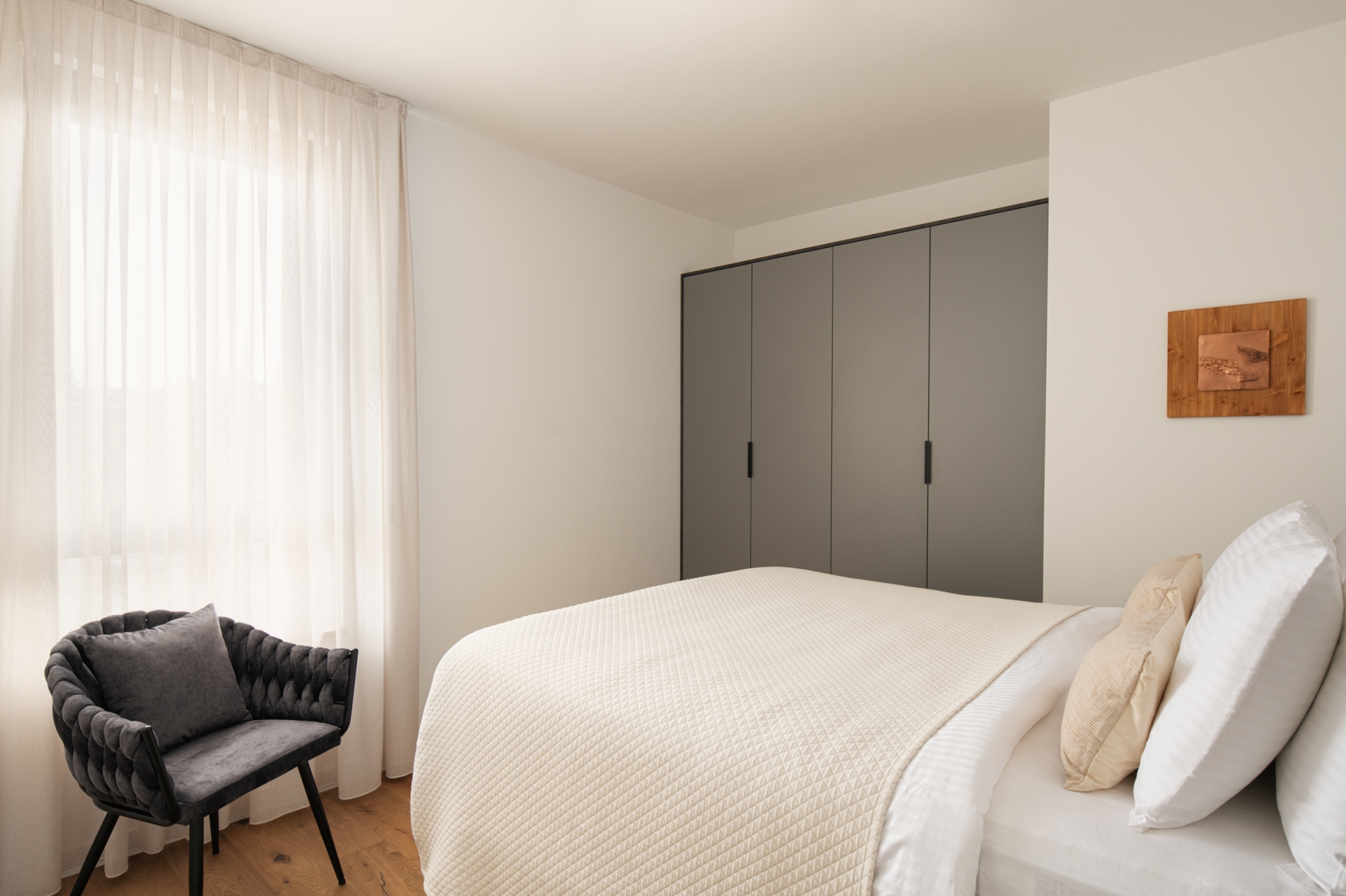 Interijer odiše suvremenom elegancijom i toplinom, a pažljivo odabrana umjetnička djela hrvatskih autora mlađe i srednje generacije dodatno obogaćuju prostor i unose karakter. Umjetnost ovdje nije samo dekoracija, izložena djela dostupna za kupnju tijekom boravka te autentično iskustvo koje možete ponijeti sa sobom.