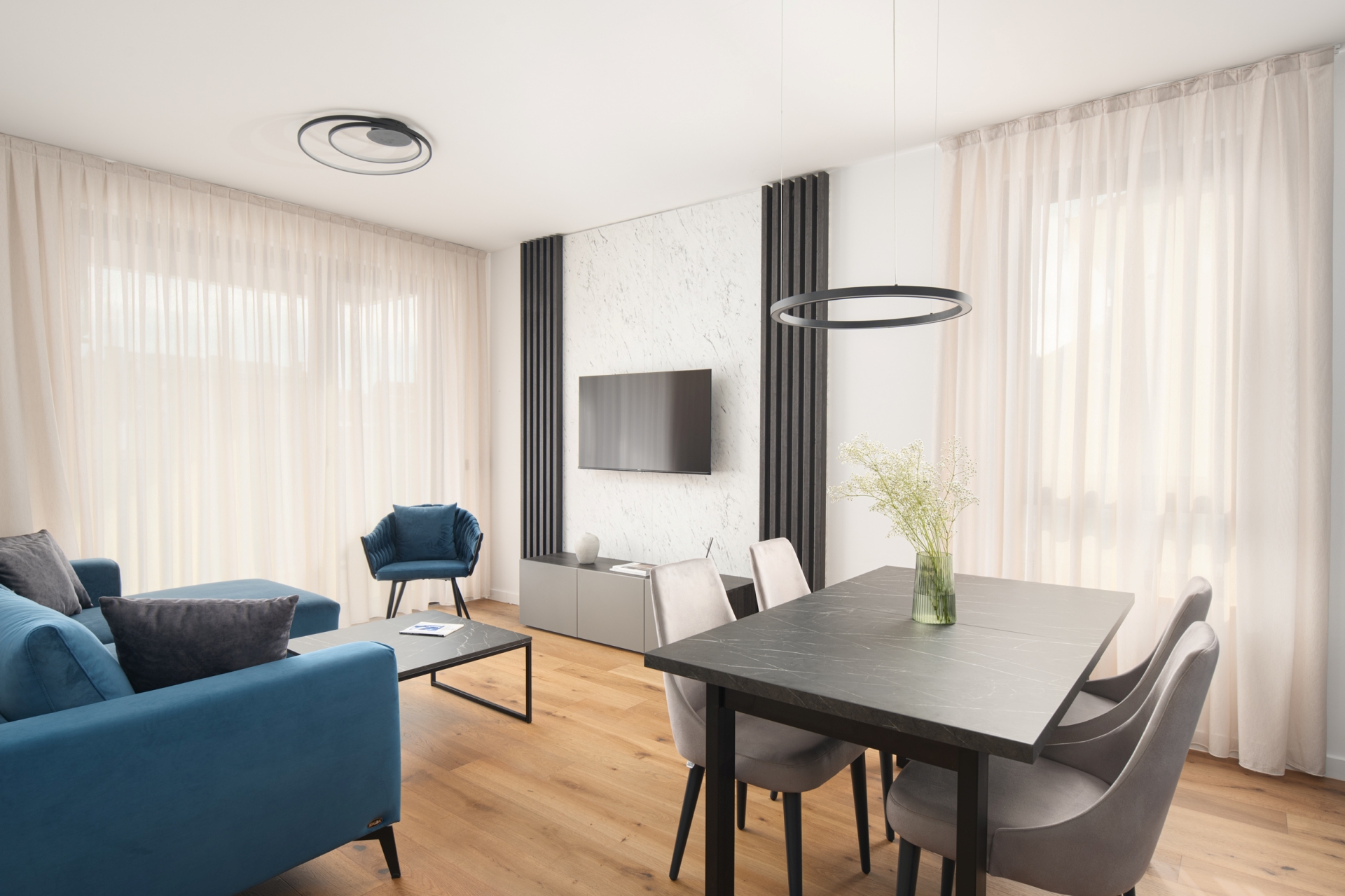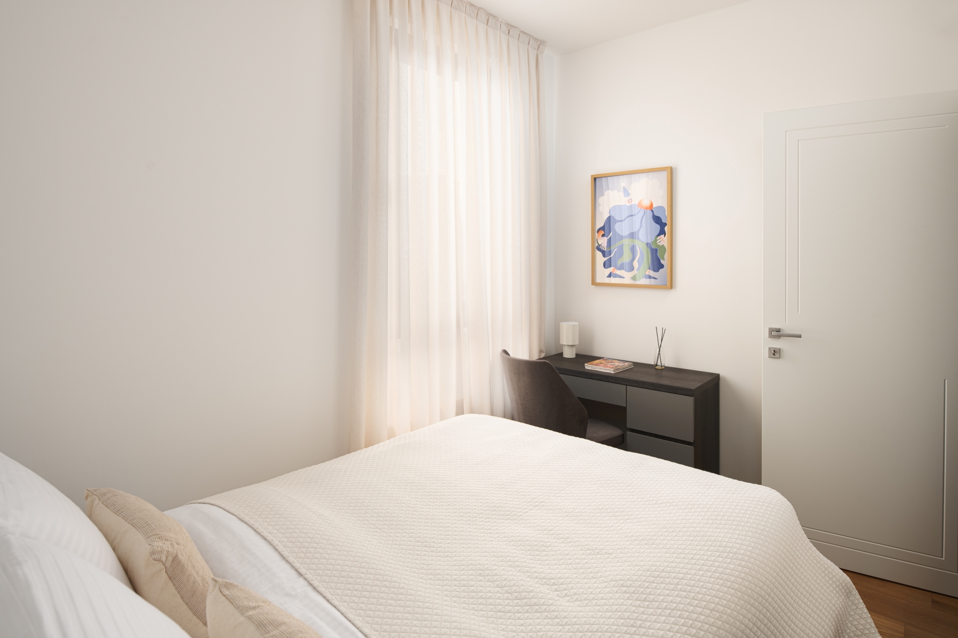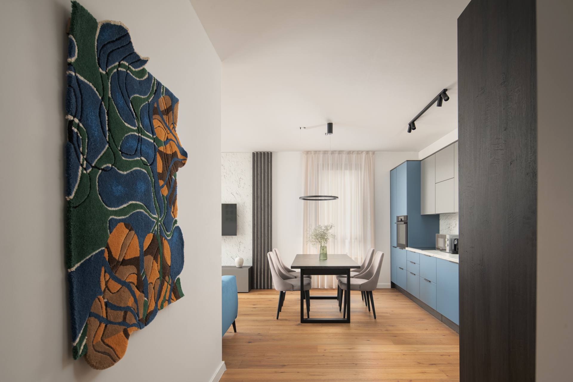 Interijer odiše suvremenom elegancijom i toplinom, a pažljivo odabrana umjetnička djela hrvatskih autora mlađe i srednje generacije dodatno obogaćuju prostor i unose karakter. Umjetnost ovdje nije samo dekoracija, izložena djela dostupna za kupnju tijekom boravka te autentično iskustvo koje možete ponijeti sa sobom.