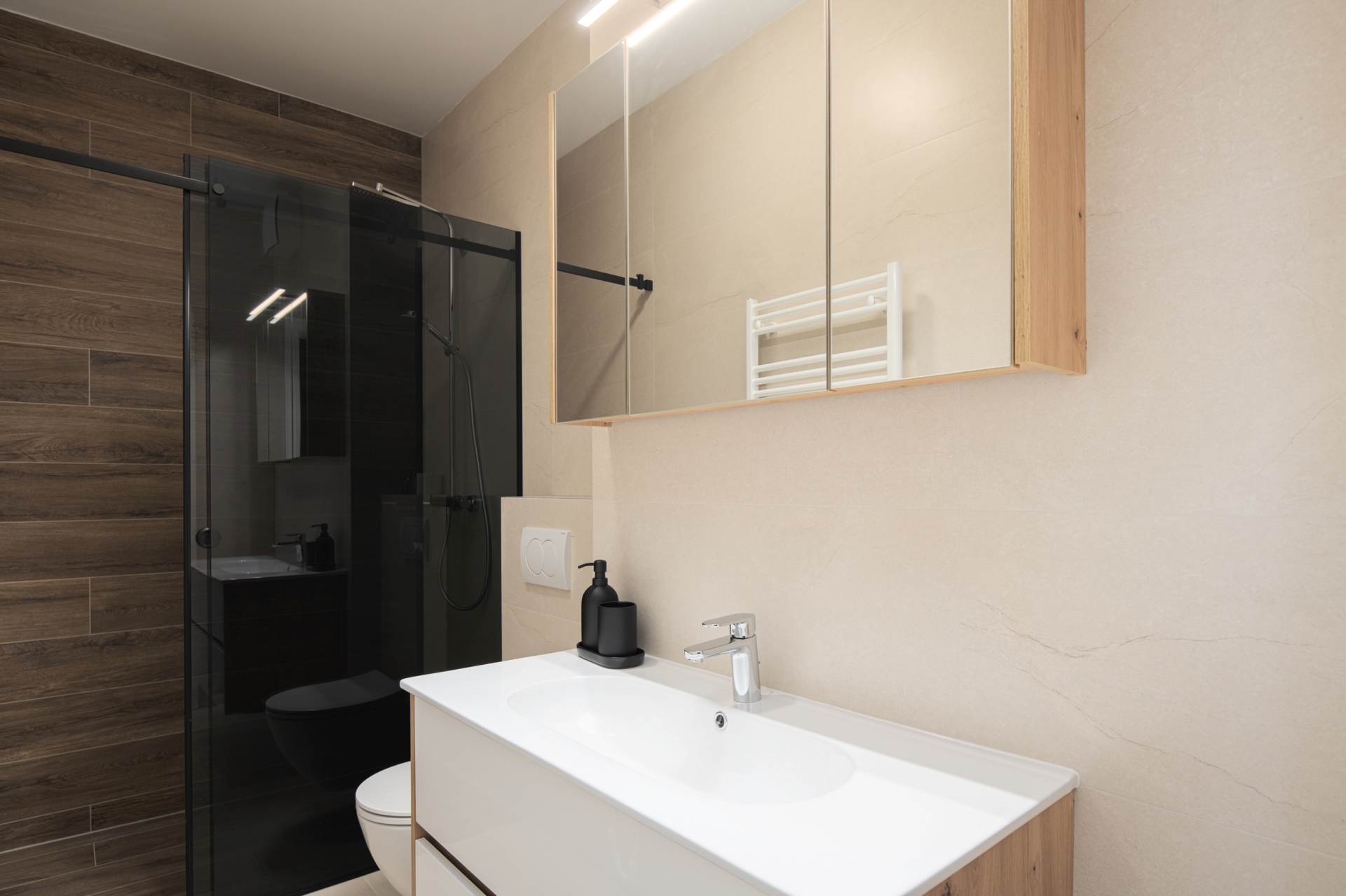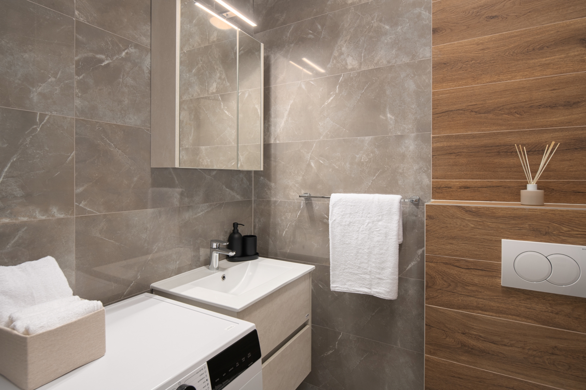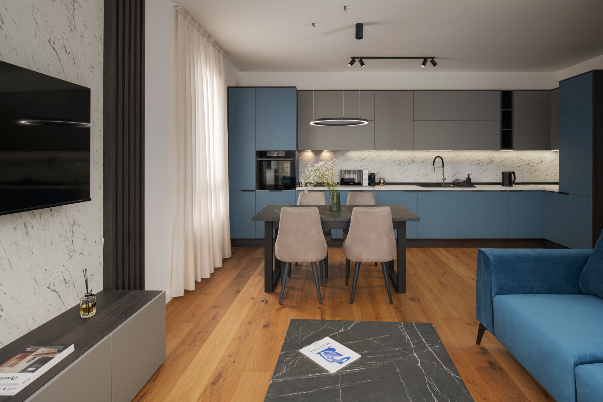 Apartman uključuje dvije udobne i moderno uređene spavaće sobe, prostrani dnevni boravak s blagovaonicom, potpuno opremljenu kuhinju, elegantnu kupaonicu s walk-in tušem, dodatni WC te balkon za opuštanje.