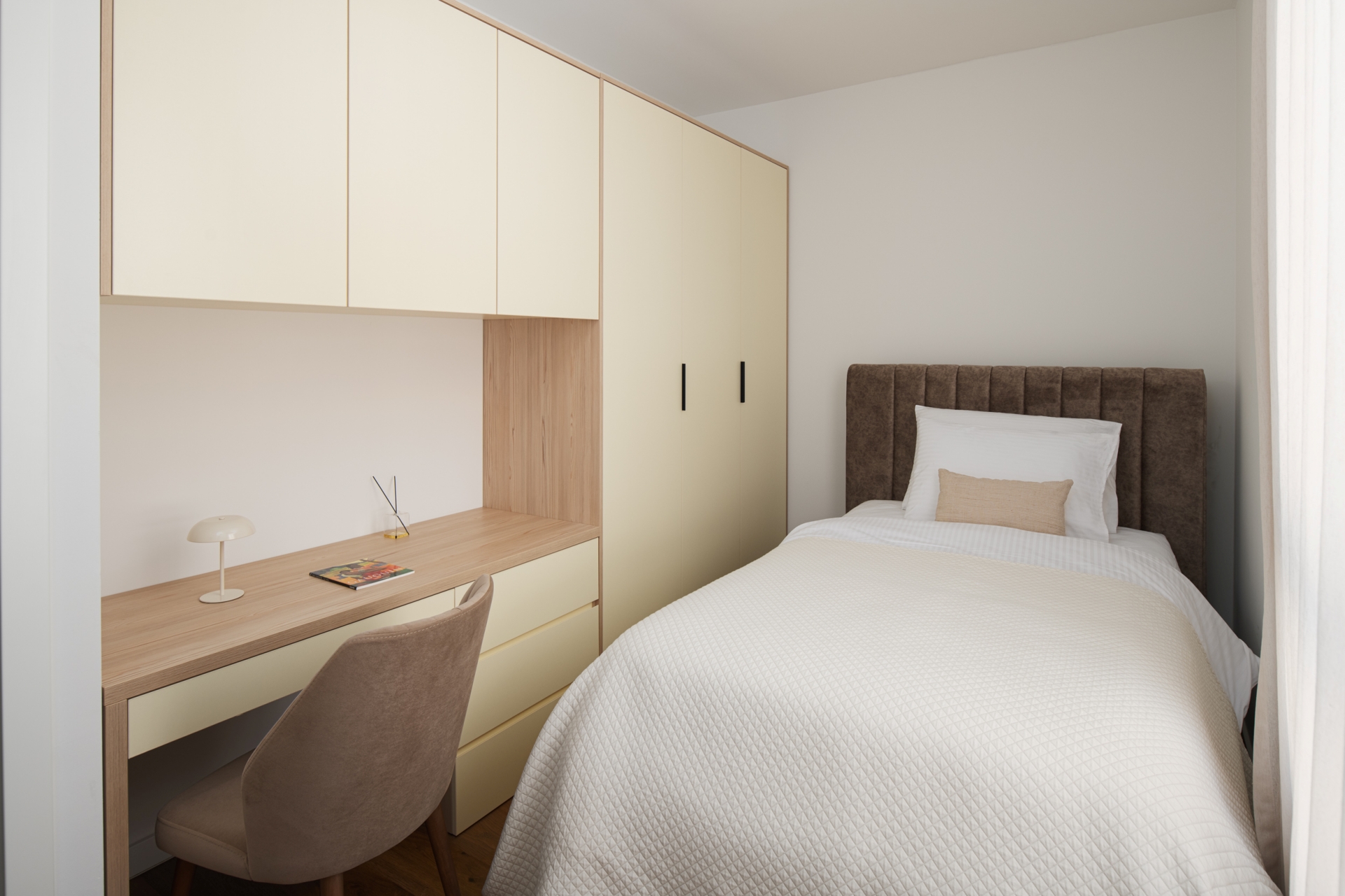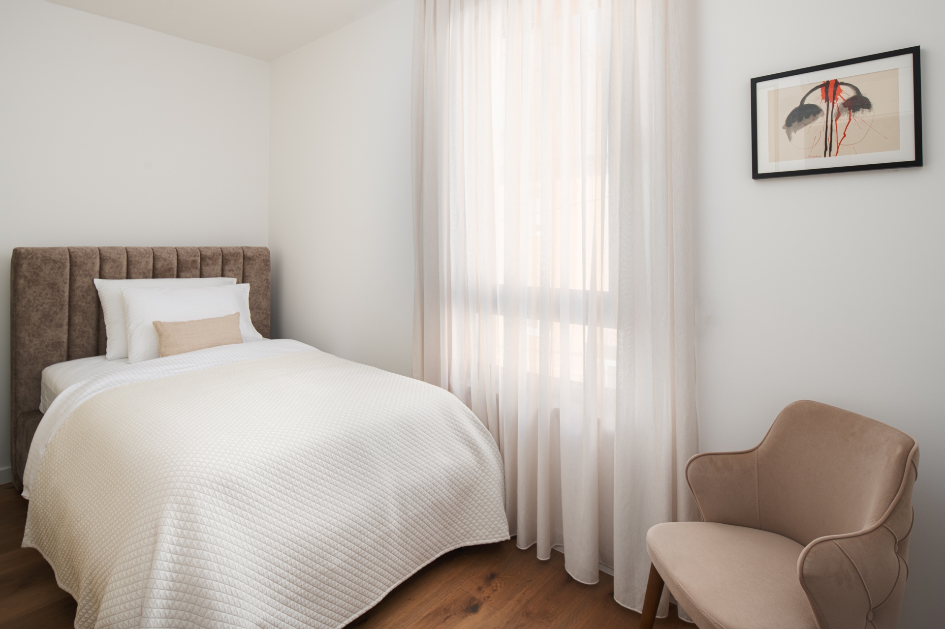 Prostrani apartman s dvije spavaće sobe i s balkonom smješten je na 1. katu Echo Art Residencea. Prostor je idealan za goste koji traže više od uobičajenog boravka, one koji traže inspiraciju, estetiku i udobnost u svakom detalju.