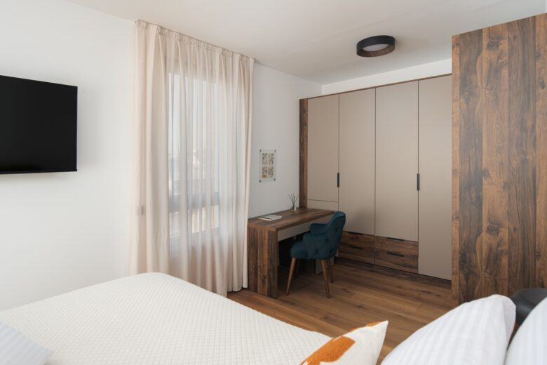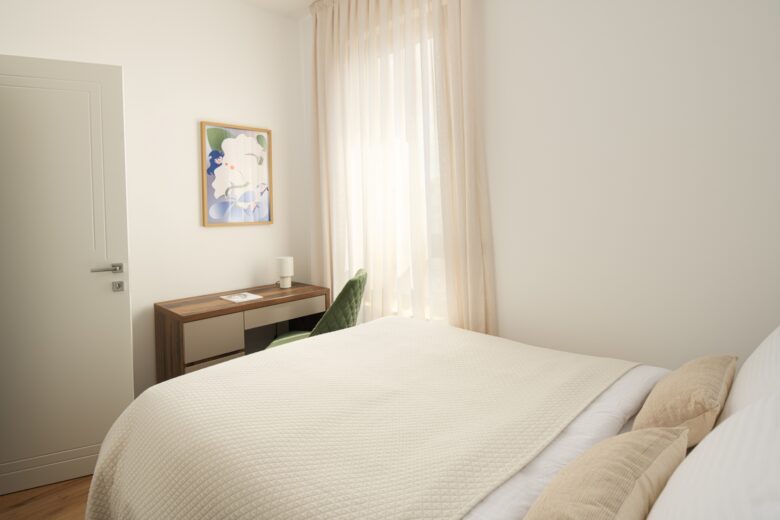 Naši dvosobni stanovi nude dovoljno prostora za opuštanje, rad i uživanje. Idealni su za duži boravak, parove ili male obitelji koje žele osjećaj doma uz dašak umjetničke elegancije. Svaki interijer odiše karakterom, uz pomno odabrane detalje koji prostor čine posebnim.