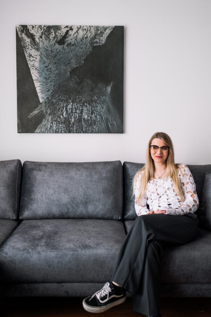 U svom radu istražuje teme nestabilnosti sjećanja i utjecaja čovjeka na prostor, eksperimentirajući s metalima poput bakra, cinka i aluminija. Do sada je izlagala na više skupnih izložbi, a 2024. godine predstavila se i samostalnom izložbom “Sjećanja s jednog otoka”.