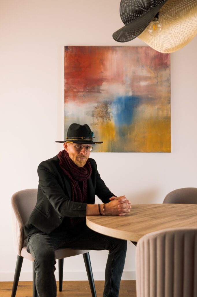 Kristijan Gradečki rođen je u Konjščini, nedaleko od Marije Bistrice. Hrvatski je umjetnik koji u svom radu istražuje granice između apstraktne poetike i temeljnih tema poput vremena, postojanja i unutarnjeg svijeta. Njegove slike, prožete simbolikom horizonta, zemlje i neba, donose dinamičan dijalog između sklada i kaosa.